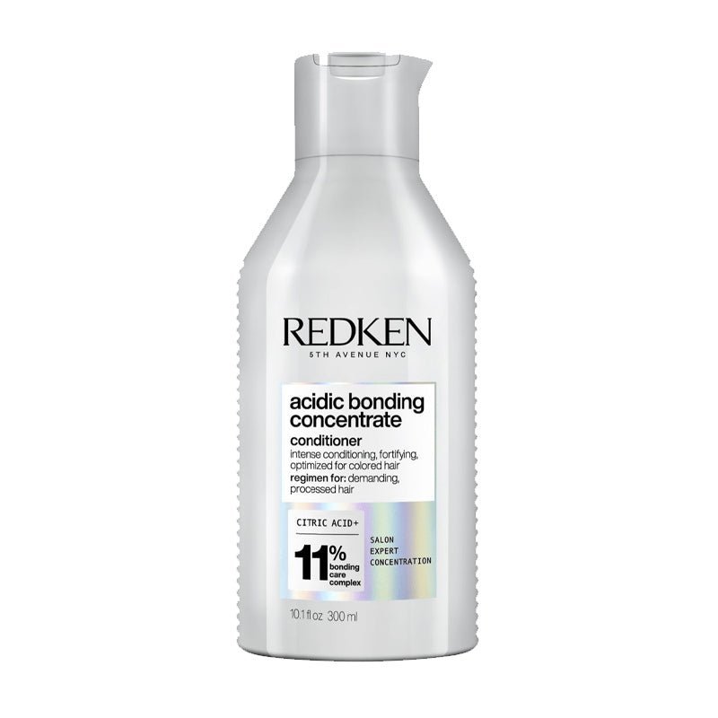 Redken Acidic Bonding Concentrate Conditioner repairs damaged hair, offers comprehensive strength repair, intense conditioning, and colour fade protection.