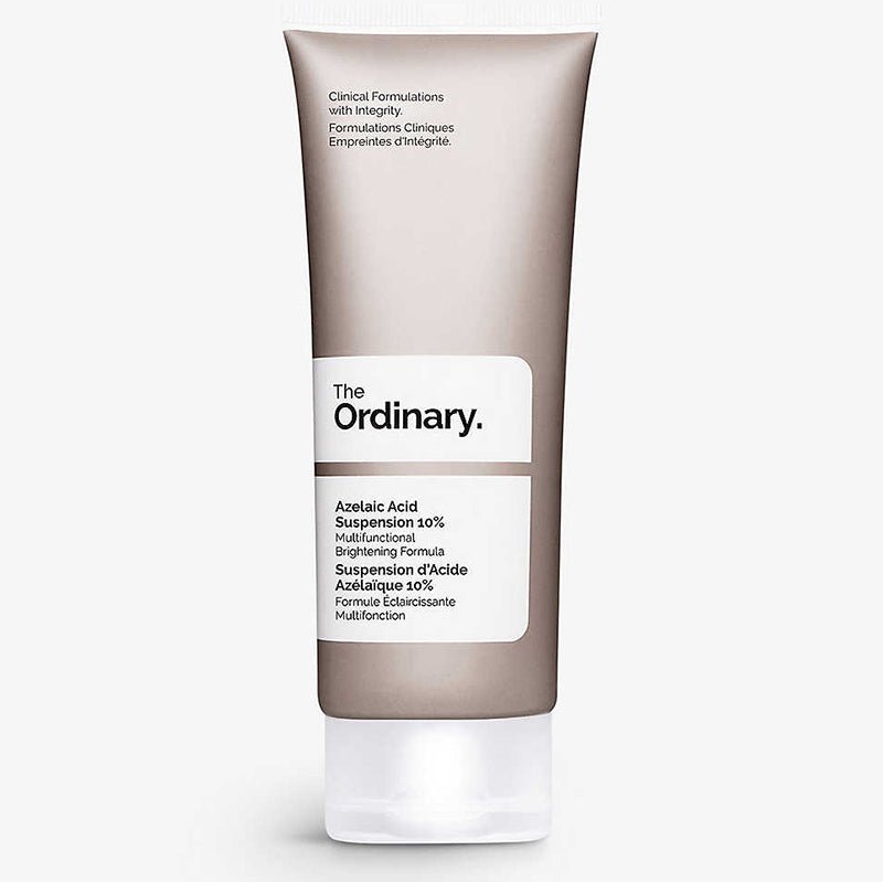 The Ordinary Azelaic Acid Suspension 10% is a lightweight cream-gel formula that brightens the skin tone.