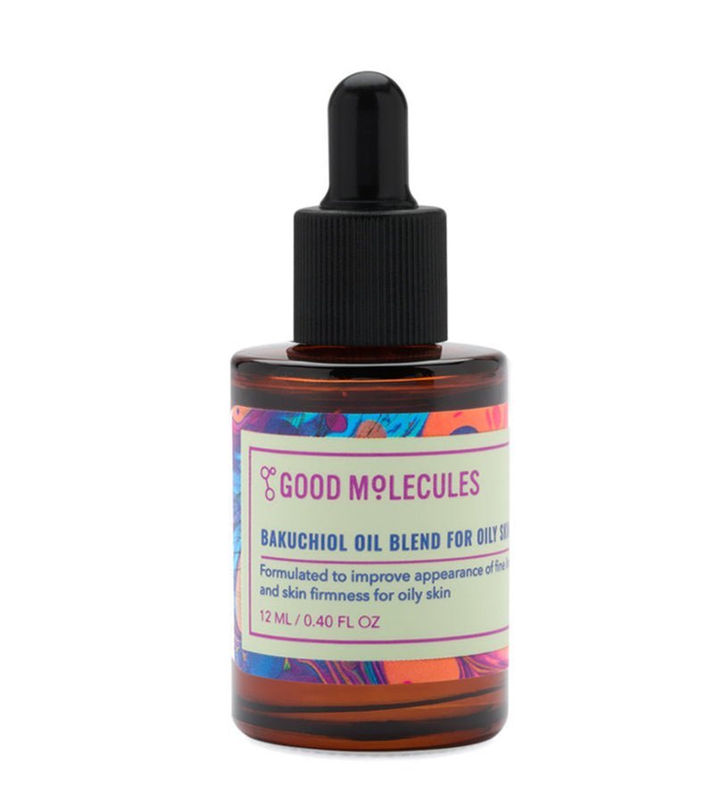 Good Molecules Bakuchiol Oil Blend For Oily Skin helps to promote firmer, bouncier skin with this bakuchiol facial oil.