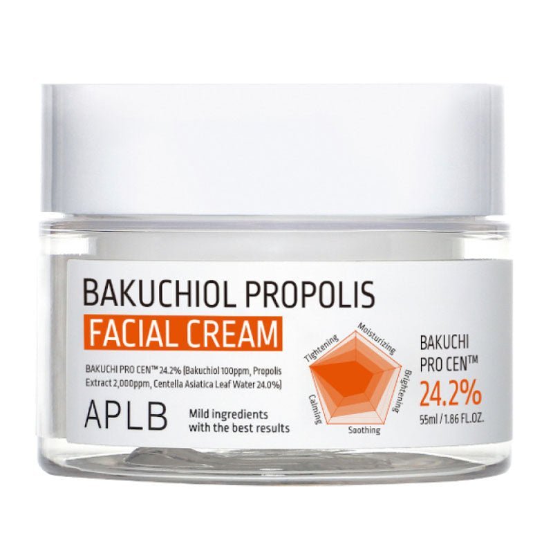 APLB Bakuchiol Propolis Facial Cream has method of applying formulation technology that protects retinol ingredients to safely reach the skin and absorb the active ingredients. APLB’s Formulation Technology Wide-Spread Texture system applied to Ginseng Root Extract Ingredient.