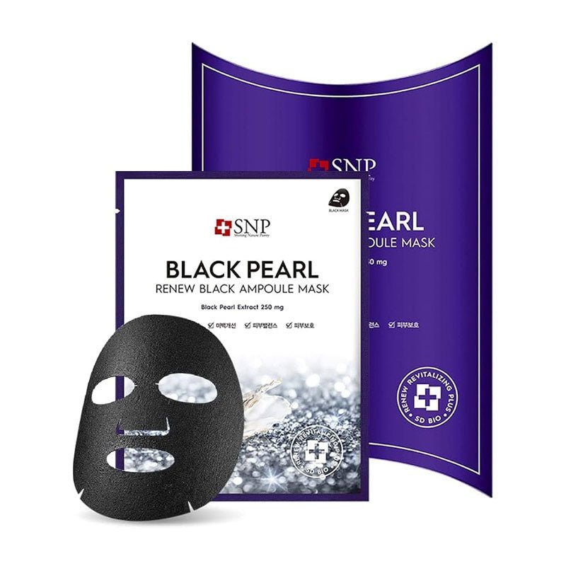 SNP Black Pearl Renew Black Ampoule Mask contains high levels of moisture that improves dryness and provides glow and vitality to the skin, with its brightening ingredients. Perfect for tired and dull skin.
