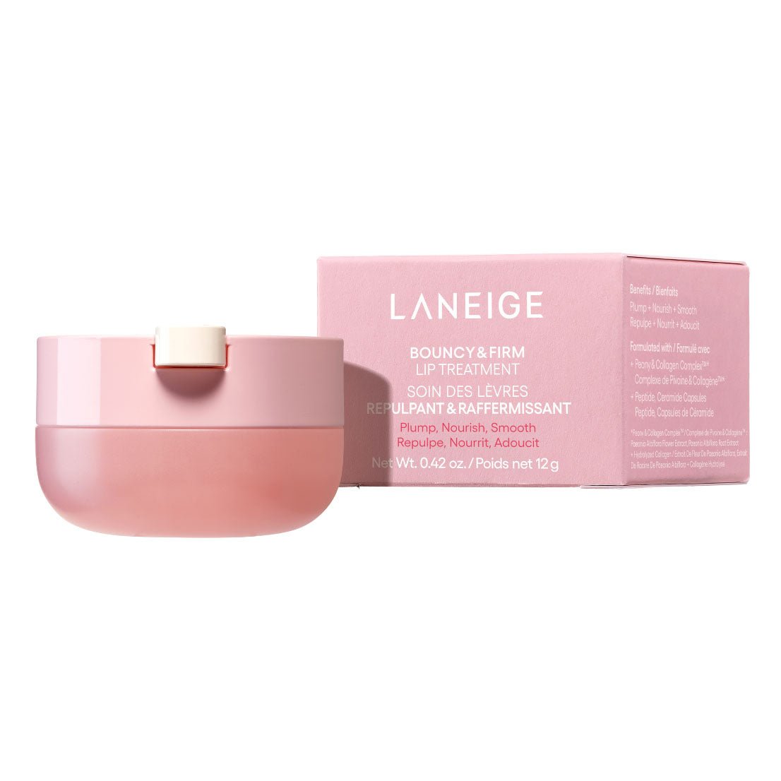 Laneige Bouncy & Firm Lip Treatment is a nourishing lip treatment infused with collagen, peptides and ceramide capsules to plump and smooth the lips.
