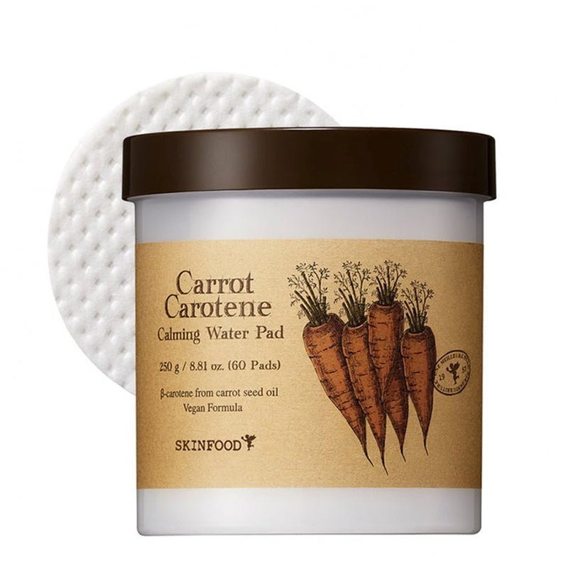Skinfood Carrot Carotene Calming Water Pad contains carrot seed oil to soothe sensitive skin and restore the skin barrier.
