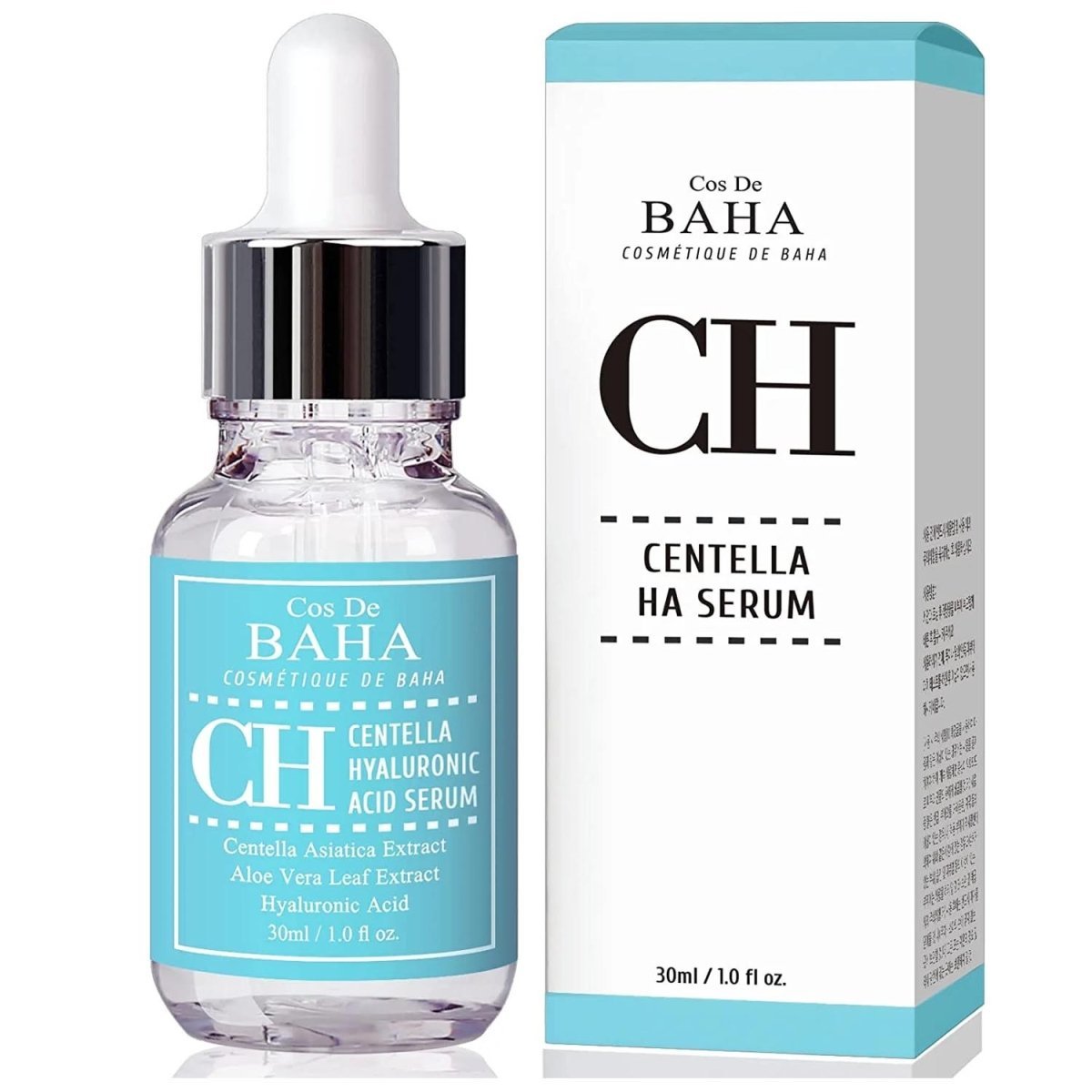 Cos De BAHA CH Centella HA Serum 30ml contains 83% Centella extract that promotes collagen synthesis and activates cell tissues to calm trouble scars.