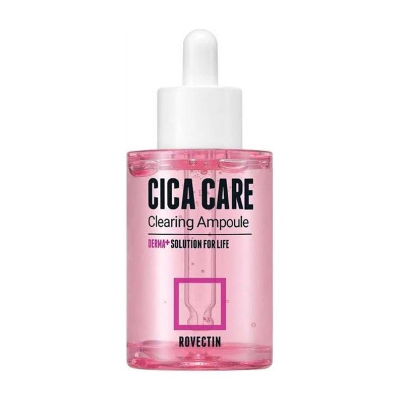 Rovectin Cica Care Clearing Ampoule is an ampoule that soothes irritated and sensitive skin with highly concentrated centella asiatica and pinkish calamine.