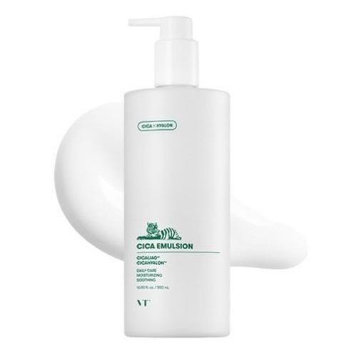 VT Cosmetics Cica Emulsion moisturizes and soothes the skin with Centella Asiatica extract.