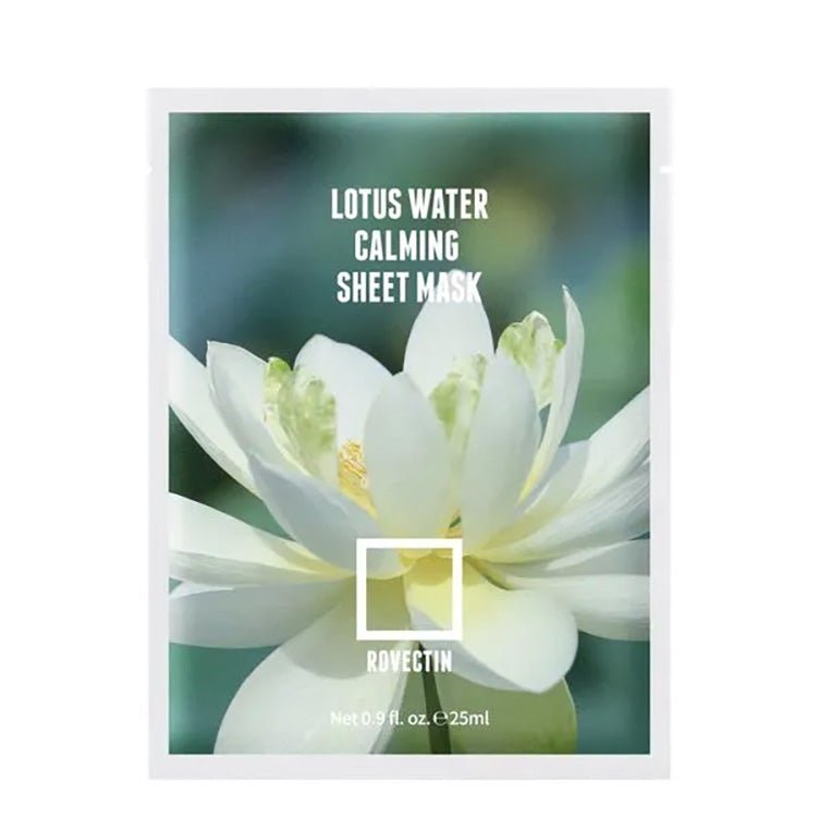 Rovectin Clean Lotus Water Calming Sheet Mask is a hydrating sheet mask helps calm and soothe irritated and sensitive skin with 52% Jeju Island Lotus Flower Extract.