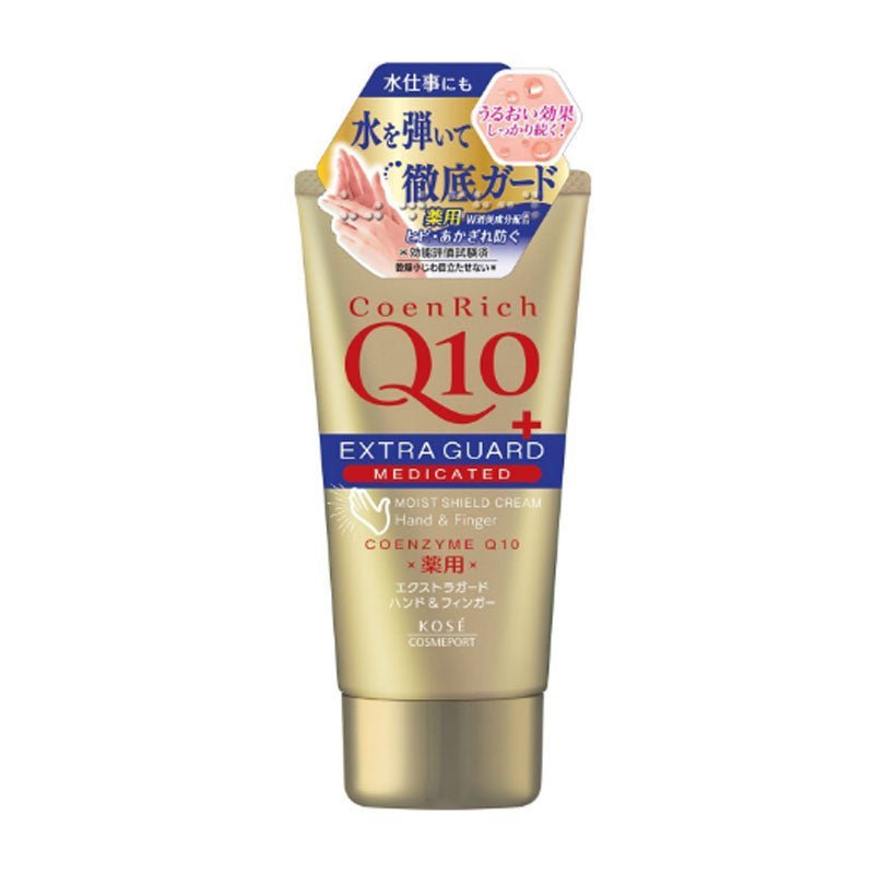 Kose Cosmeport CoenRich Q10+ Extra Guard Medicated Moist Shield Hand Cream is rich, nourishing for it comes packed with coenzyme Q10 to keep skin hydrated and supple.