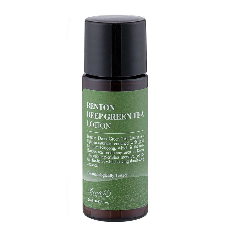 Benton Deep Green Tea Lotion helps to replenish moisture and soothe skin.