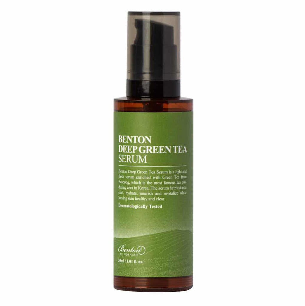 Benton Deep Green Tea Serum helps to hydrate and nourish the skin.