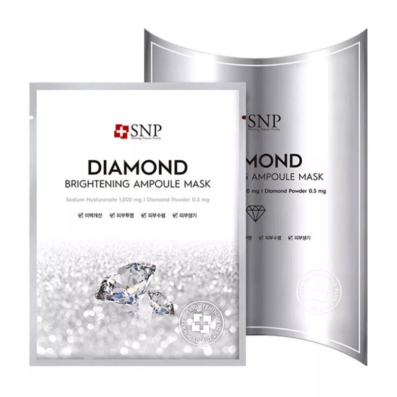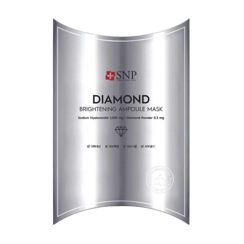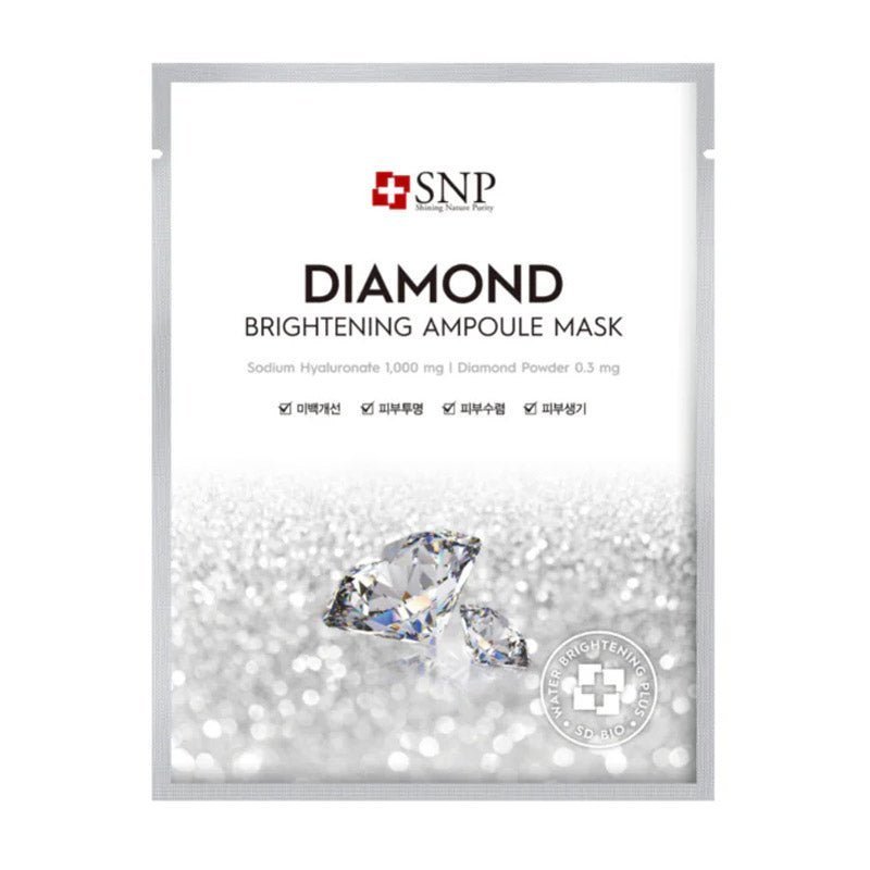 SNP Diamond Brightening Ampoule Mask delivers deep nourishment, radiant glow, and long-lasting adherence for visibly clear and soft skin.