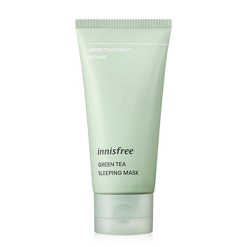 Innisfree Green Tea Sleeping Mask delivers refreshing hydration from Jeju Green Tea extract while you snooze.