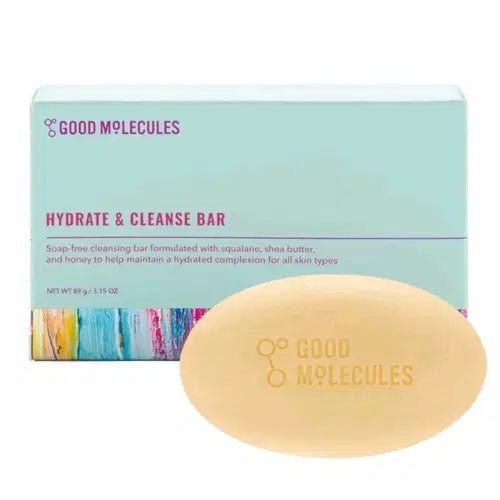 Good Molecules Hydrate & Cleanse Bar is an ultra-gentle, soap-free cleansing bar that purifies and hydrates skin at the same time.