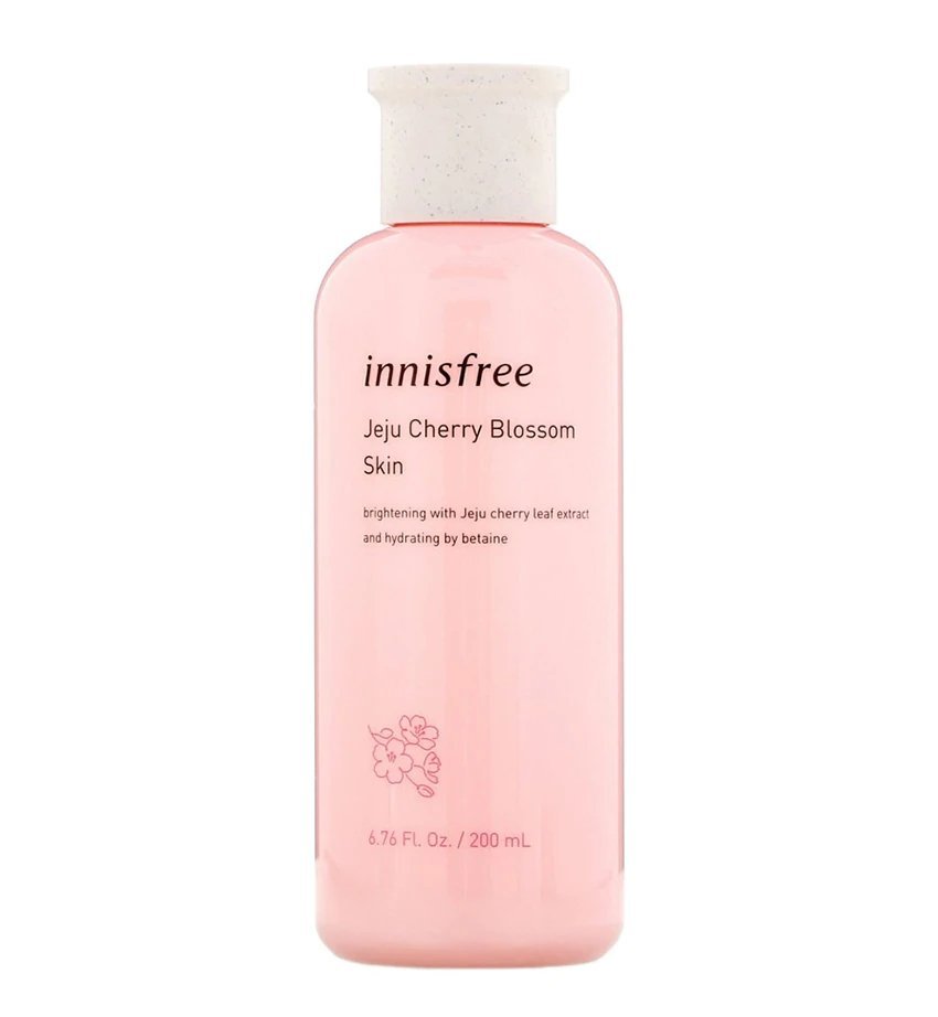 Innisfree Jeju Cherry Blossom Skin is a gentle toner for the skin that helps strengthen the skin barrier and reduce the appearance of redness and discolouration.