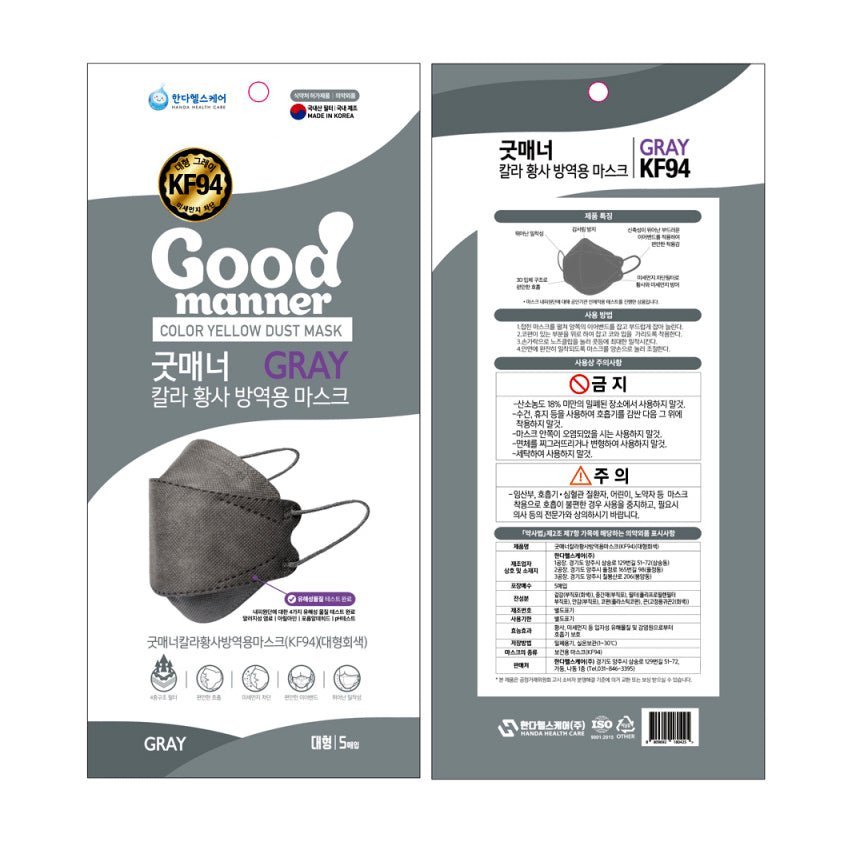 Good Manner KF94 Mask Grey Colour has a 4-layer antistatic filtration system and has a 3D structure for easy and comfortable breathing.