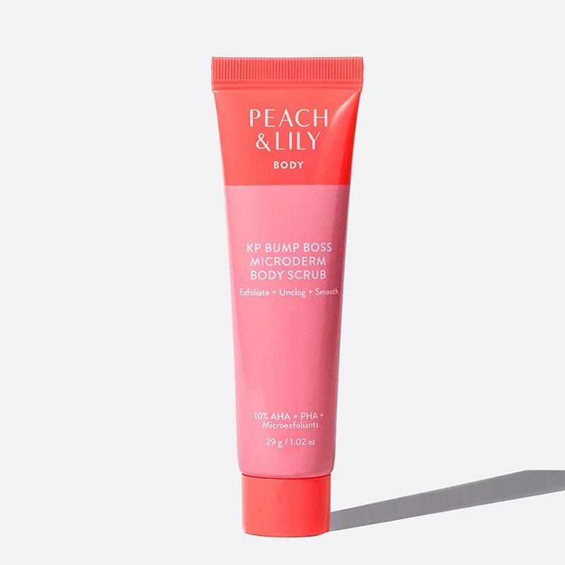 Peach & Lily KP Bump Boss Microderm Body Scrub is a super-smoothing scrub and delivers the benefits of a chemical peel, microdermabrasion treatment and skin-softener in one.
