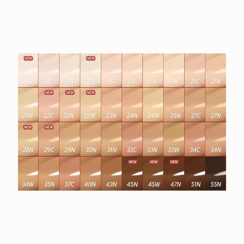 | Option | #10C Shell, #13C Fair, #13N Fair Ivory, #13W Cream, #15C Fair Porecelain, #17C Porcelain, #17N Vanilla, #17W French Vanilla, #21C Cool Ivory, #21N Ivory, #21W Natural Ivory, #22C Peach Beige, #22N Shell Beige, #22W Sheer Beige, #23N Sand, #24N Latte, #24W Soft Beige, #25N Mocha, #27C Cool Beige, #27N Camel, #28N Oat, #29C Taupe Beige, #29N Natural Beige, #30N Rich honey, #31N French Beige, #33C Hazel, #33N Macchiato, #33W Ginger, #34C Amber, #34N Pecan, #34W Toffee, #35N Walnut, #37C Almond, #40N Cinnamon, #43N Deep Cocoa, #45W Chesnut, #47N Ebony, #51N Fudge, #55N Espresso |