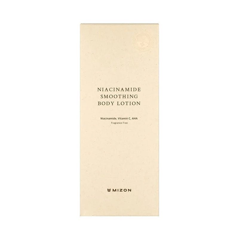 Mizon Niacinamide Smoothing Body Lotion is a body lotion infused with 10% Niacinamide, Vitamin C, and AHA.