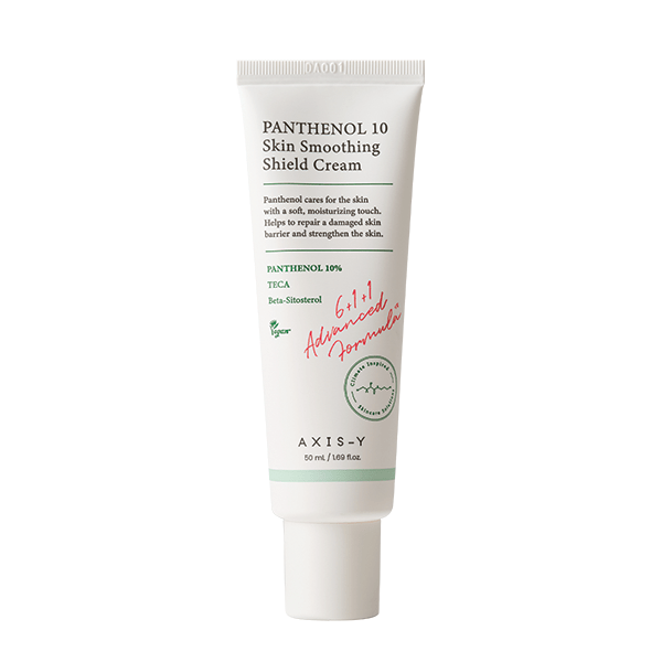 Axis-Y Panthenol 10 Skin Smoothing Shield Cream strengthens the moisture barrier, soothes stressed skin, and provides protection against external aggressors, making it ideal for both morning and evening skincare routines.
