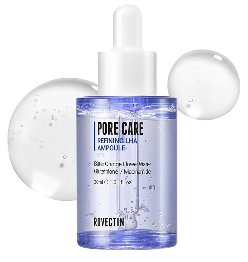 Rovectin Pore Care Refining LHA Ampoule is a mildly exfoliating ampoule formulated with LHA and Hyaluronic Acid to effectively keep pores clear of dead skin cells, including blackheads and sebum without stripping skin.