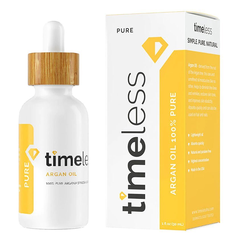 Timeless Pure Argan Oil 100% is a rare unrefined oil that deeply nourishes the skin absorbs quickly
