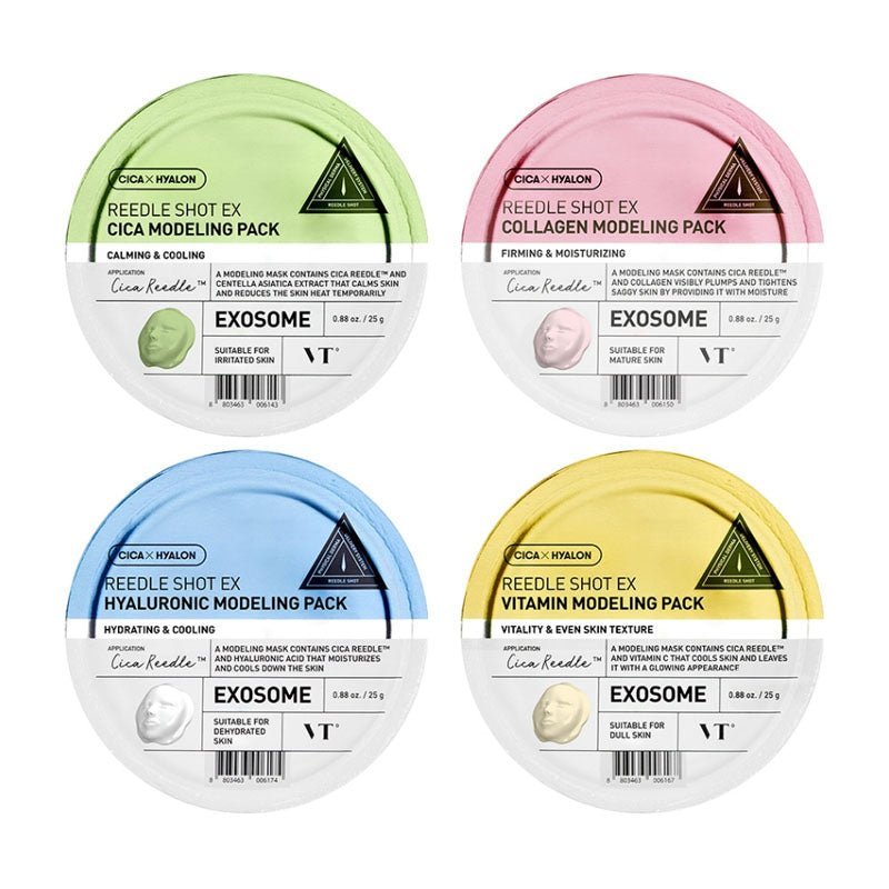 VT Cosmetics Reedle Shot Ex Modelling Pack infused with milk exosomes to nourish skin and help to promote skin repair and regeneration. Formulated with American Diatomaceous earth, which has excellent adsorption of waste, and folds well without clumping, making it easier to use.
