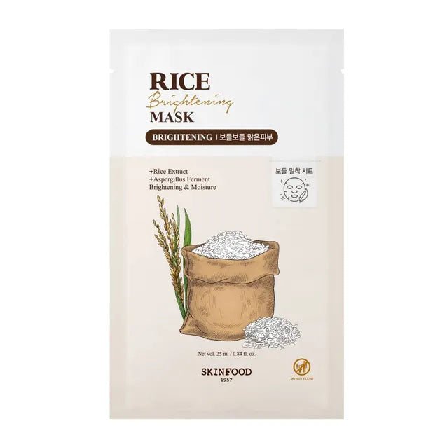 Skinfood Rice Brightening Mask is a brightening rice mask soaked in essence and effectively delivers moisture to pores.