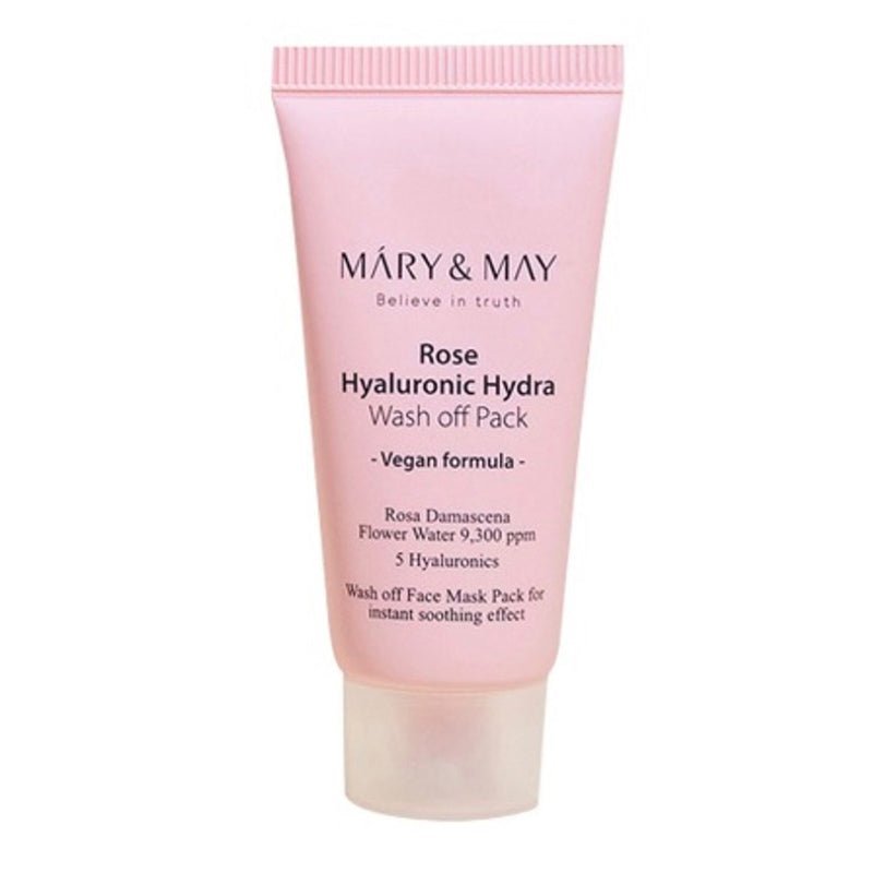 Mary & May Rose Hyaluronic Hydra Wash off Pack is formulated with 5 types of hyaluronic acid and 9,300 ppm Damask rose water.