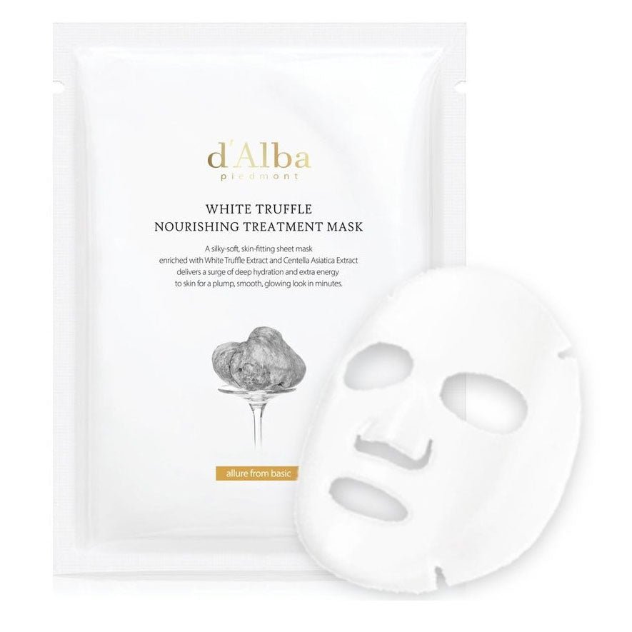 D’Alba White Truffle Nourishing Treatment Mask provides effective hydration and soothing for the skin, offering a convenient one-step self-care solution.